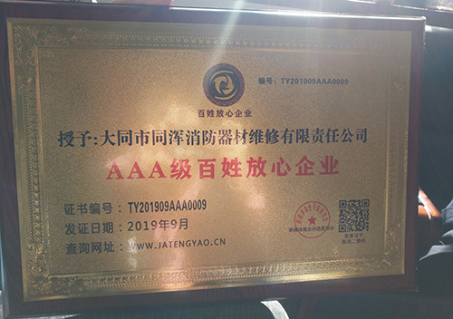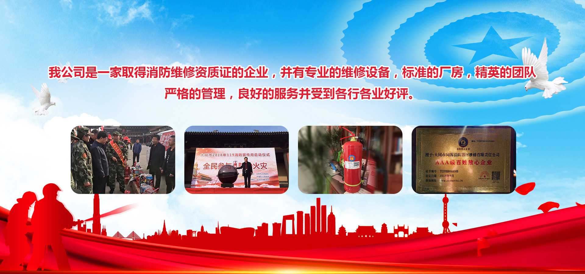 大同市同渾消防器材維修有限責任公司,位于大同市同泉路389號,始建于2000年,是公安部消防局定點銷售和維修的企業(yè),歷經多年的創(chuàng)建、發(fā)展和拼搏,現有多家消防器材廠商供應我公司,并有現代化維修設備,標準的廠房,嚴格的管理,優(yōu)良的設備,良好的服務并受到各行各業(yè)的好評。總經理劉國玉嚴格管理,嚴格要求,精益求精,認真負責,帶領團隊熱烈歡迎各界朋友顧客光臨。